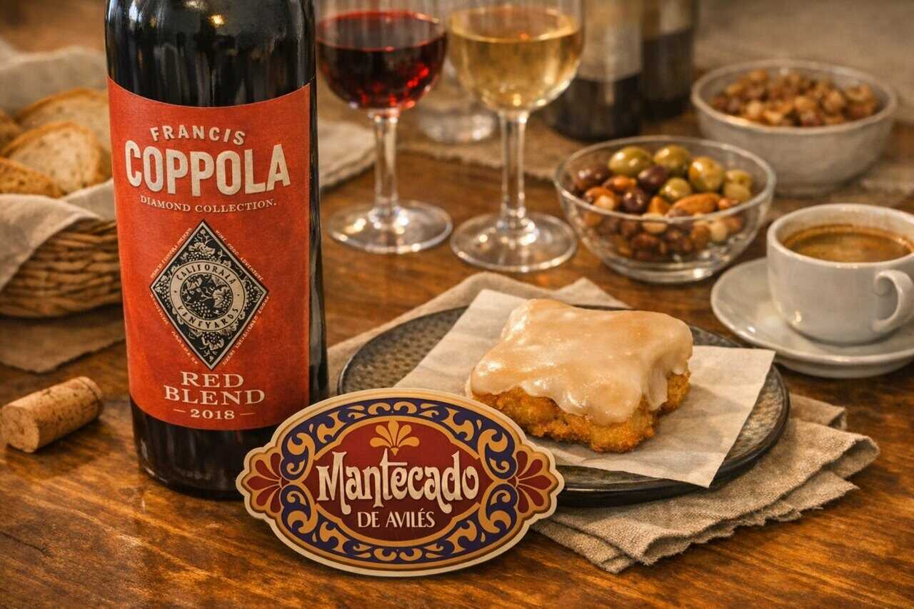 Y si lo unimos al Bollo de Avilés, el tinto Coppola —con su perfil de fruta negra madura, violetas y la profundidad aromática que aporta la β-damascenona— encuentra un contrapunto sorprendentemente armónico en este postre. El glaseado dulce y la miga mantecada suavizan los taninos y realzan las notas de ciruela, cassis y especias del vino.