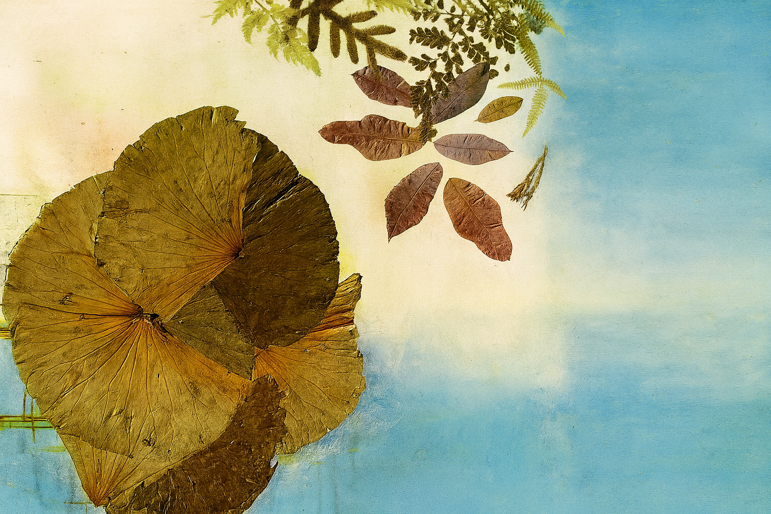 El premiado artista Frank D. Lara Peña, de origen dominicano, formado entre paisajes secos y una tradición familiar de sensibilidad artística, basa su búsqueda creativa también en lo elemental. Como la cocina italiana, Frank trabaja con lo que la tierra ofrece: hojas, flores, fibras, materiales orgánicos que él no manipula para ocultar su origen, sino para revelar su verdad. Sus collages no imitan la naturaleza: la honran, la escuchan, la dejan hablar.