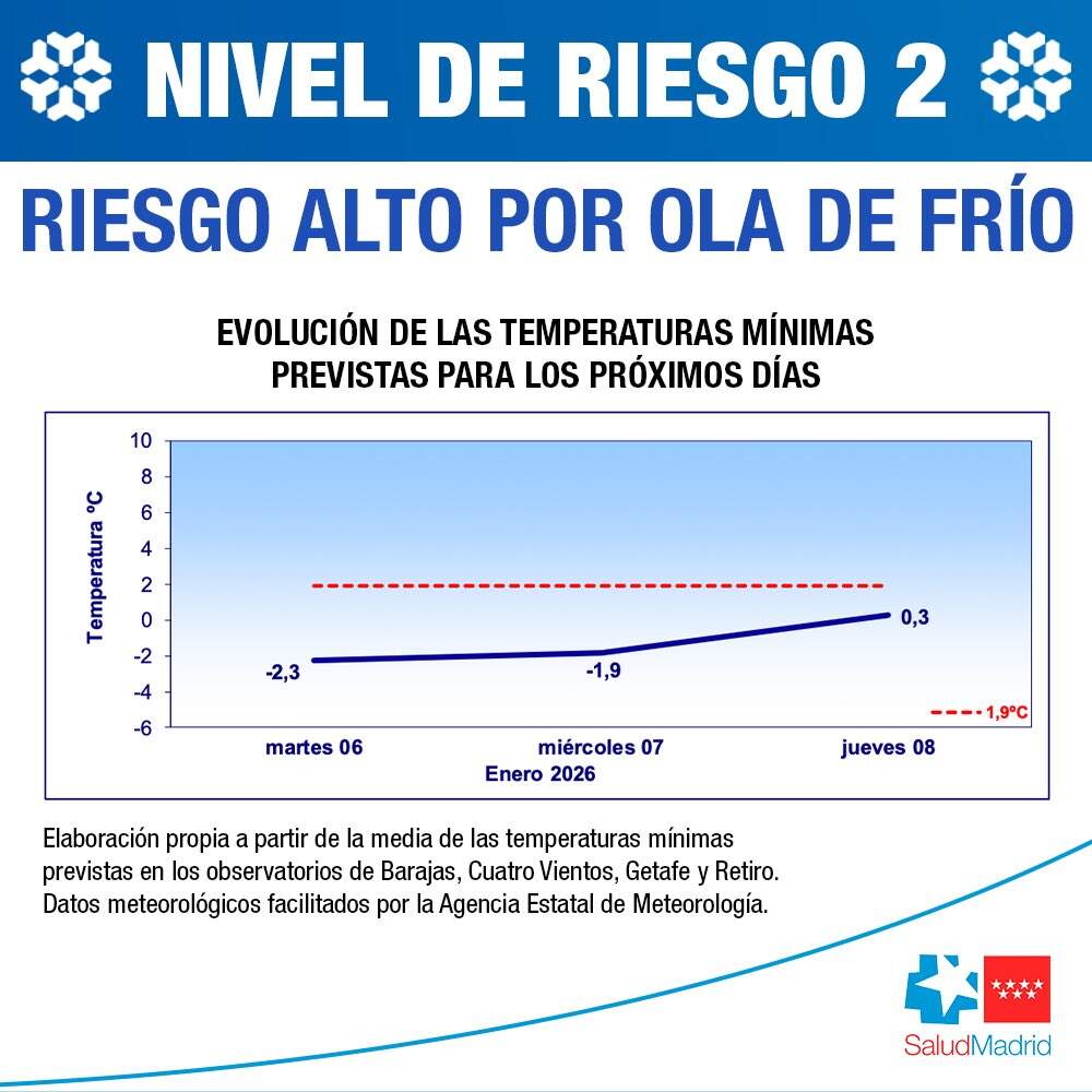 La Comunidad de Madrid tiene activado el Plan de Vigilancia y Control de los Efectos del Frío para la Salud desde el pasado mes de diciembre y lo mantendrá hasta el 31 de marzo, cuando las temperaturas aumenten.