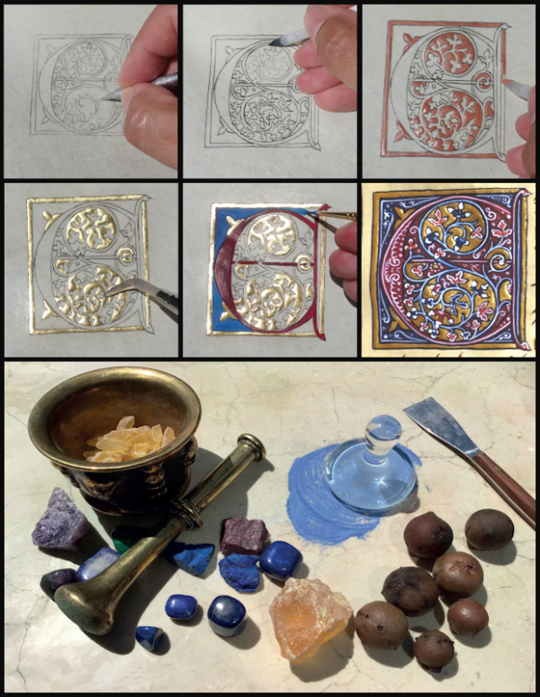 Fue cuando realmente se sumergió en el profundo análisis de los recetarios medievales, de las publicaciones de investigadores de todo el mundo y el examen directo al microscopio de numerosas miniaturas de época, como fuentes necesarias para el desarrollo de su técnica pictórica, iniciada desde la admiración y el asombro vertiginoso de un niño ante la belleza.