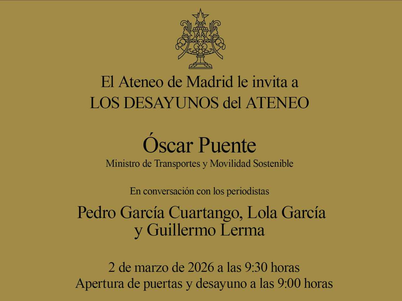 El Ateneo de Madrid acoge una intensa programación cultural con Óscar Puente, teatro clásico y debates internacionales