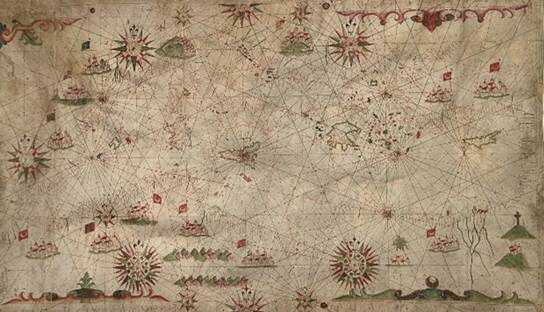 - Portulano del Mediterráneo (s. XVI–XVII): carta manuscrita sobre pergamino iluminada, atribuida a la familia Oliva de cartógrafos mallorquines.