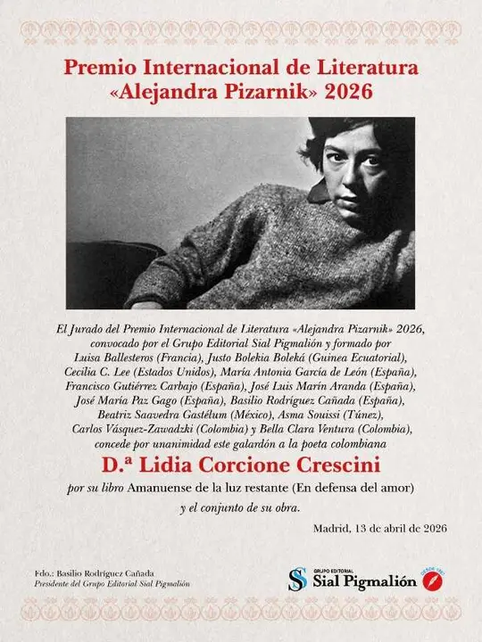 El Premio Internacional de Poesía “Alejandra Pizarnik”, impulsado por el Grupo Editorial Sial Pigmalión, celebra en esta convocatoria el vigésimo octavo aniversario de la editorial reafirmando su compromiso con la visibilización de autoras en el ámbito poético.