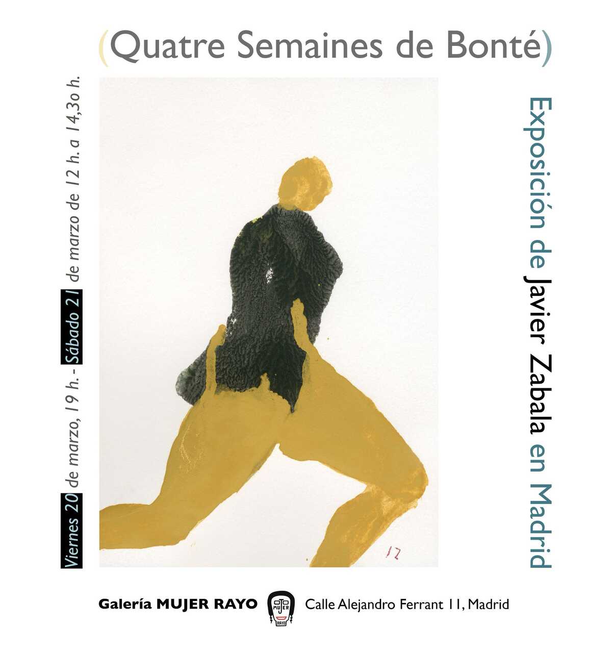 La inauguración tendrá lugar el viernes 20 de marzo a las 19:00 horas, mientras que el sábado 21 podrá visitarse en horario de 12:00 a 14:30 horas. La muestra se celebrará en la galería Mujer Rayo, situada en la calle Alejandro Ferrant, en el entorno del barrio de Retiro.