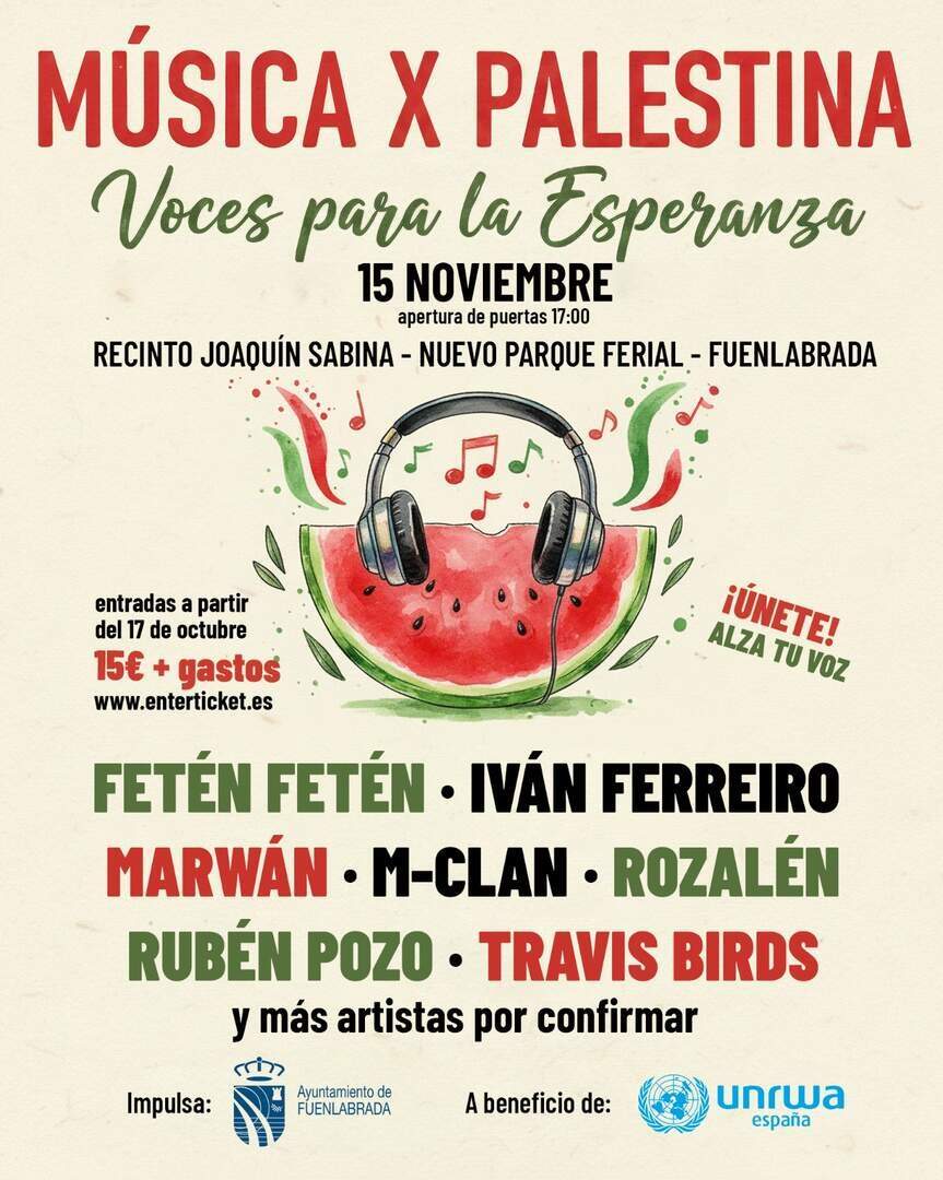El festival solidario ‘Música X Palestina’ reunirá a destacados artistas el 15 de noviembre para recaudar fondos destinados a los refugiados en Palestina