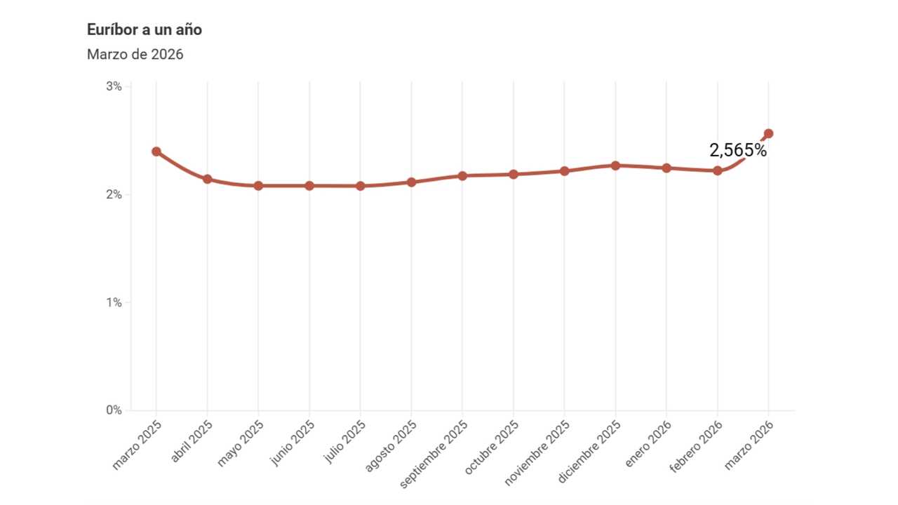 El Banco de España ha confirmado este miércoles que el euríbor a un año, principal índice de referencia para las hipotecas de tipo variable, cerró el mes de marzo en el 2,565%. Este dato supone un repunte frente al 2,221% registrado en febrero, rompiendo así con dos meses consecutivos de caídas. Los analistas apuntan a la inestabilidad geopolítica derivada del conflicto en Irán como el factor determinante en este cambio de tendencia que encarecerá las cuotas de quienes tengan que revisar su préstamo anualmente.