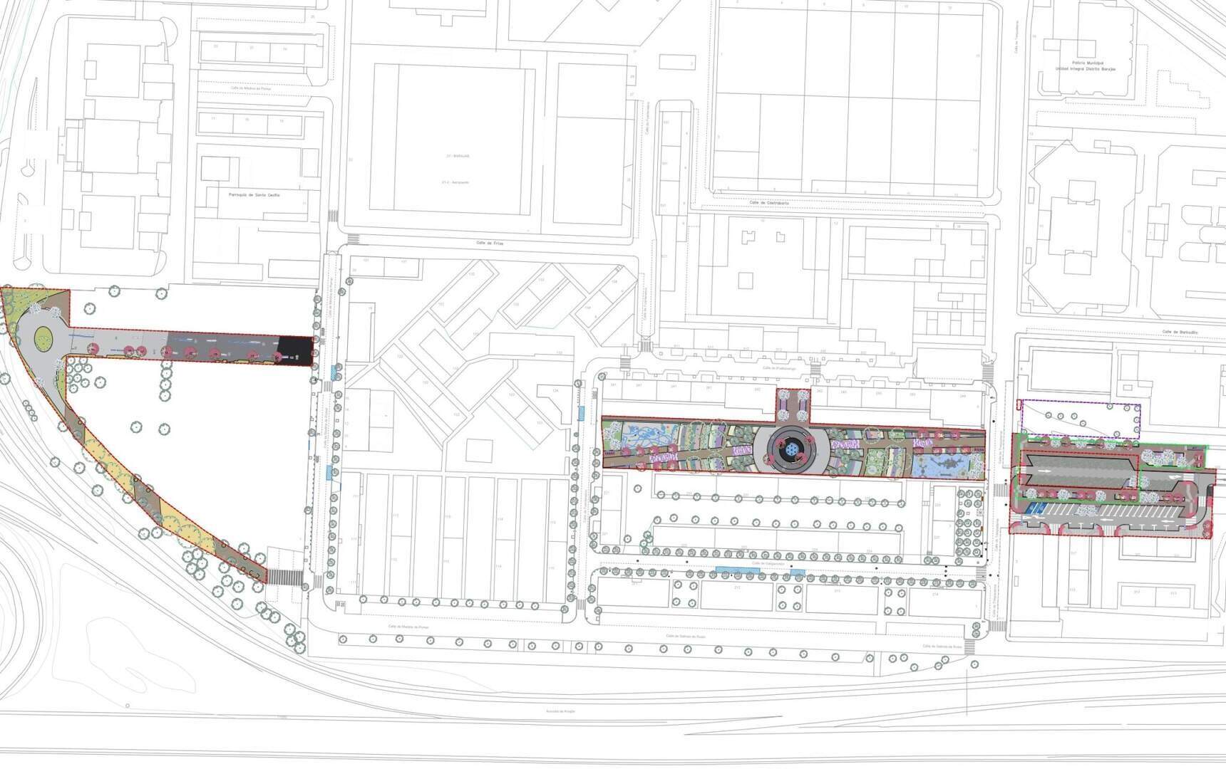 Creación de un bulevar central con mobiliario urbano, que enlazará directamente con el nuevo parque mediante un paso peatonal.
