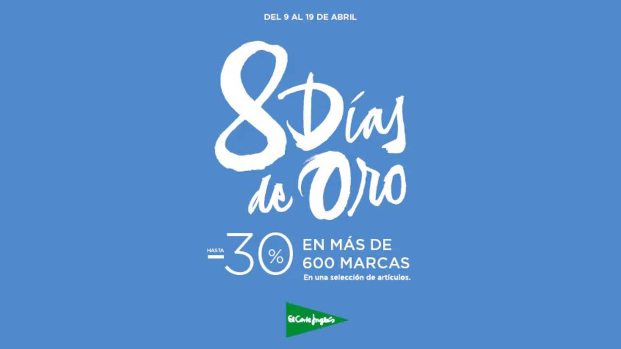 El Corte Inglés ha dado hoy el pistoletazo de salida a una de sus campañas más emblemáticas: los 'Ocho Días de Oro'. Hasta el próximo 19 de abril, la compañía ofrecerá descuentos de hasta el 30% en más de 600 marcas líderes, una promoción que estará disponible simultáneamente en sus centros comerciales, página web y aplicación oficial.