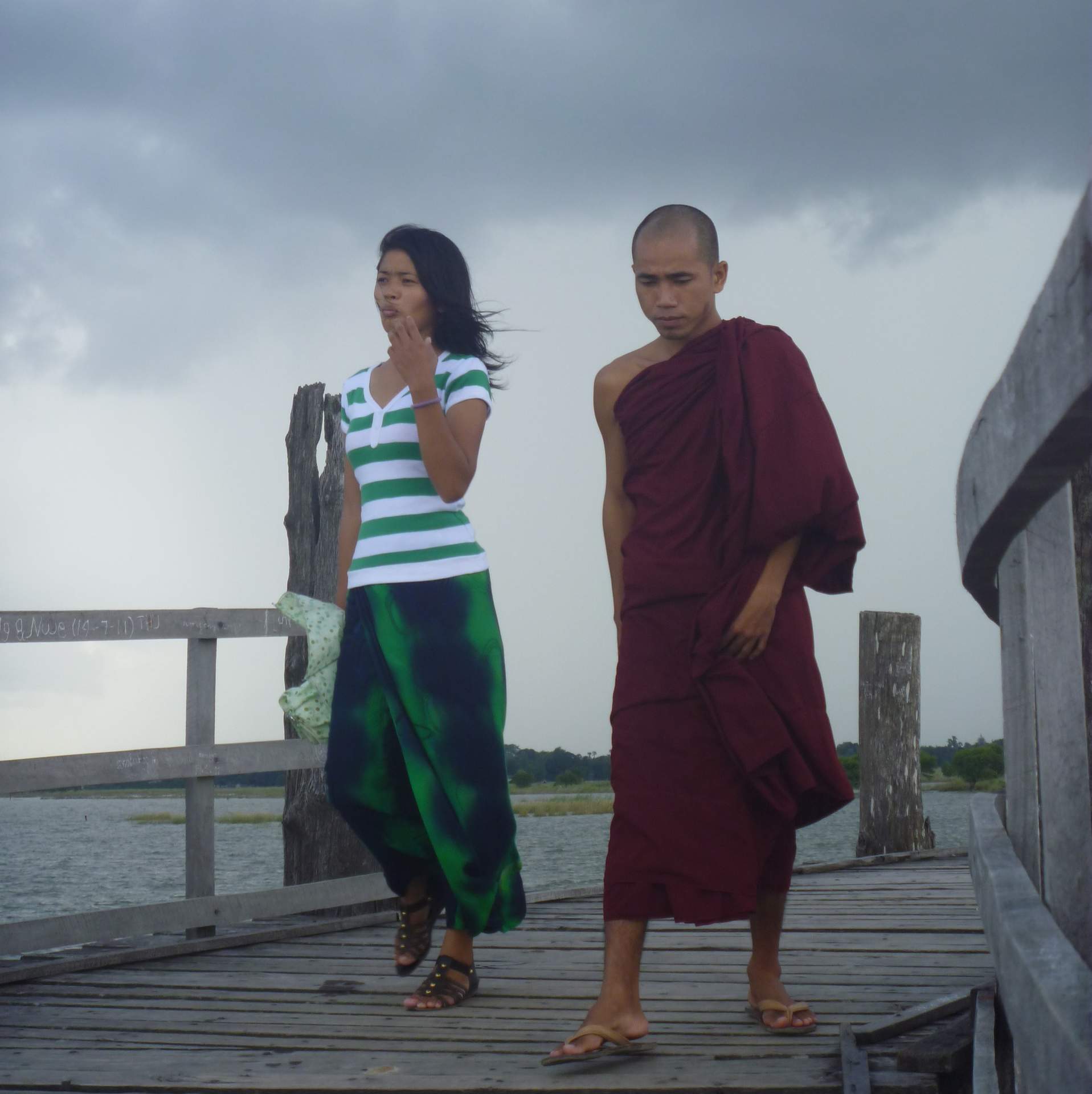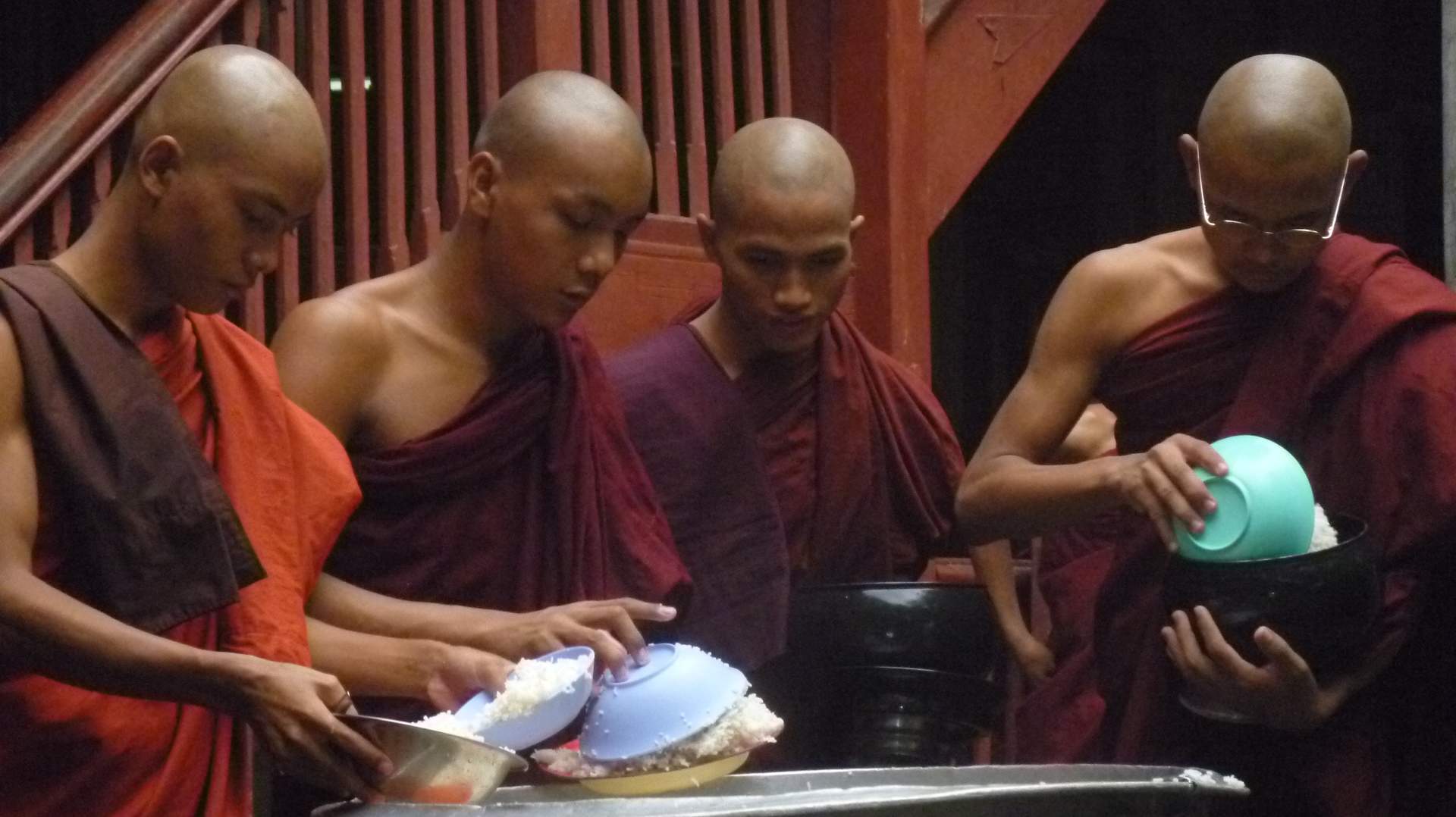 Finalmente llegué a la pequeña ciudad de Amarapura, donde todos sus habitantes conocían la ubicación del monasterio de Mahagandayon; conocido por su estricta adherencia al Vinaya, el código monástico budista y el cual alberga a monjes que meditan en el bosque. Un portón delimitaba la propiedad y desde ahí podían verse las casas donde vivían y estudiaban los monjes. Tras acercarme a un gran salón que tenía la puerta abierta, un estudiante salió enseguida a recibirme: