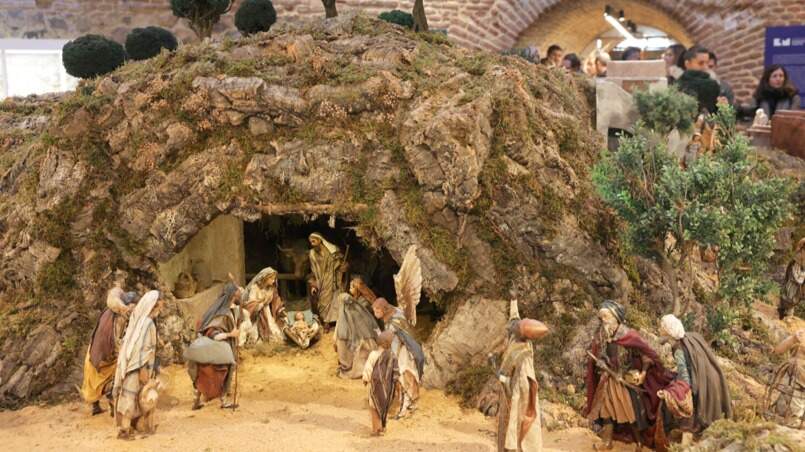 El belén incluye también figuras en movimiento, diseñadas por Nicolás Salmerio, que recrean el ambiente de los mercados de la época y escenas domésticas que aportan dinamismo y narrativa a la exposición.