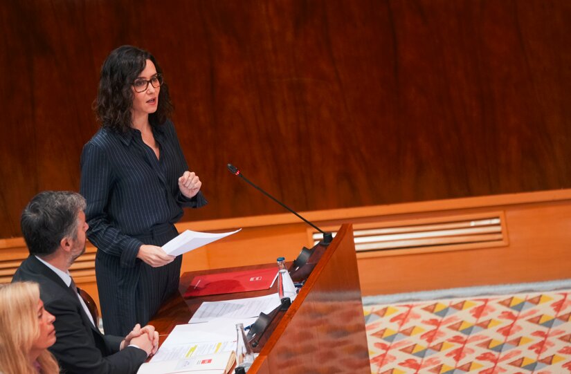 Ayuso reclama a Vox que no fuerce elecciones en Extremadura y critica a la izquierda por el caso de Móstoles en un tenso Pleno regional