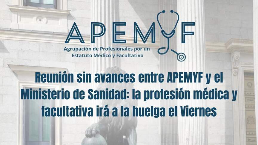 APEMYF denuncia la falta de avances en la negociación con Sanidad sobre un Estatuto propio y confirma la huelga nacional de médicos y facultativos este viernes